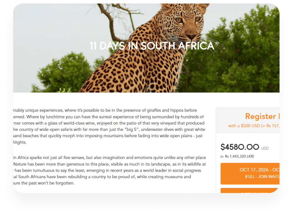 Detours Travel is a well-established LGBTQ+ group travel company with a large, loyal customer base. They specialize in small-group adventure trips to global destinations, creating inclusive travel experiences for their community. When they partnered with Nimi, their business was already strong but needed technical enhancements to improve booking flows, payment options, and operational efficiency across international markets.